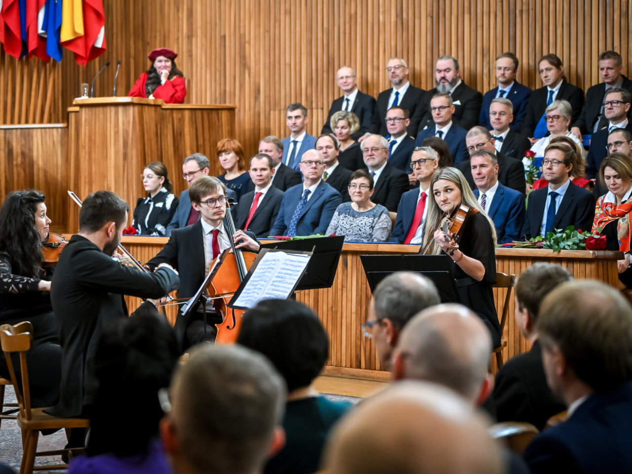 Zatímco ministr školství Mikuláš Bek ve svém proslovu hovořil mimo jiné o tom, že se v posledních letech podařilo ve vysokém školství uskutečnit jen málo z reformních plánů (proslov ministra je možné stáhnout zde), prezident Petr Pavel jmenovaným připomněl, že získáním profesorského titulu jejich profesní cesta zdaleka nekončí.